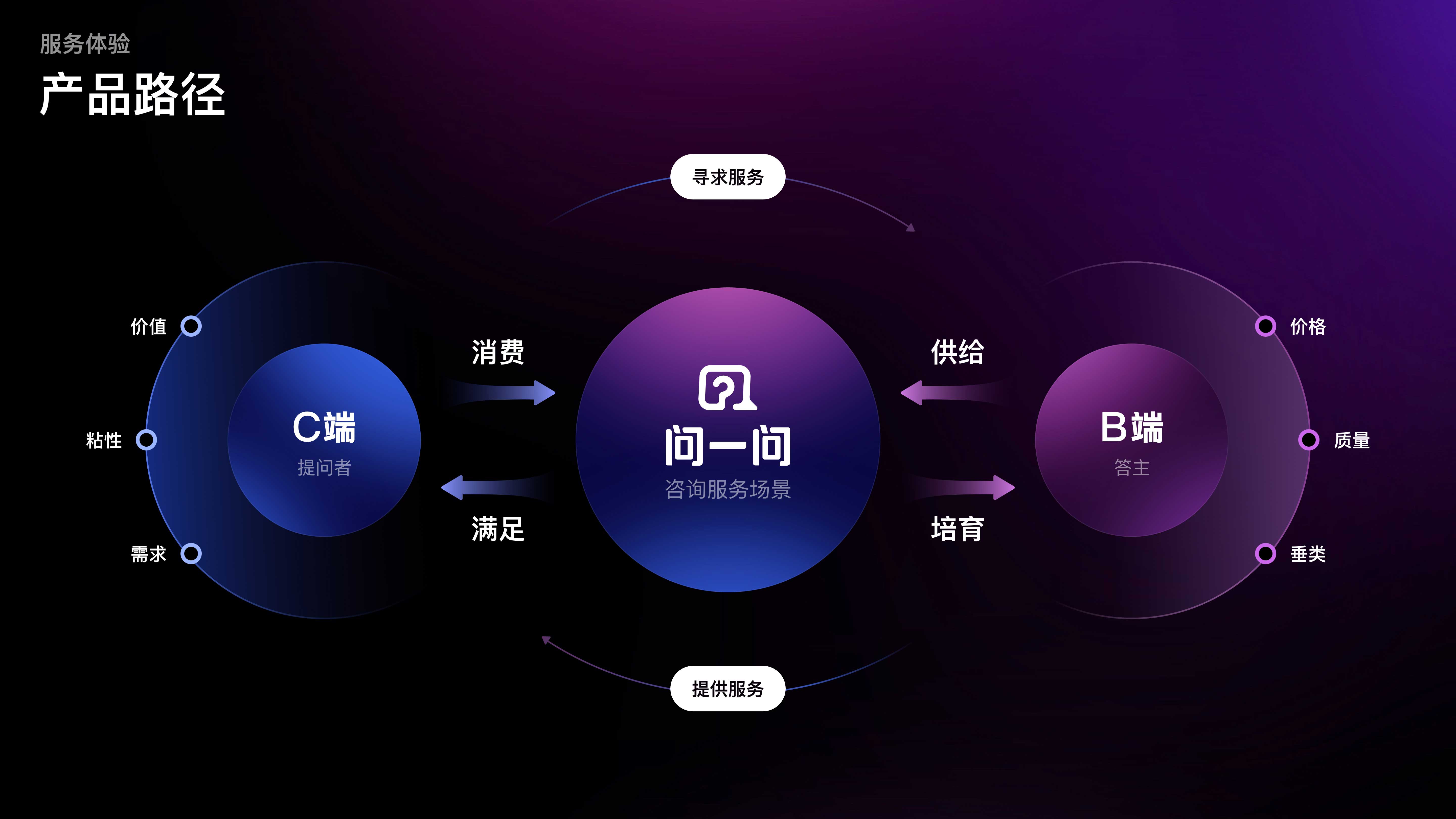 “百度問一問”是一款由真人答主提供1對1實時在線咨詢的服務型產品,自2020年孵化成功已走過3年半的歷程。作為服務場域的建設者,我們的設計使命從初創驗證階段的基建搭建,到規模擴張期的提轉探索,升級為現階段的追求體驗&收入雙線發展。
