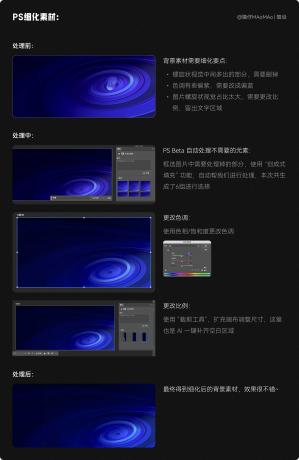 這一步考驗的是設計師的審美和手活,我們需要把背景和主視覺素材,進行視覺合成,其實也非常簡單:這里我定的主要色調是藍色+青色的光感,首先需要將色調整體統一;然后想要表現出玻璃質感的通透,我們需要加上一些光感;最后文字排版出圖即可~