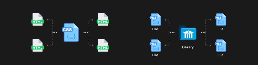 在前端實現中同理,樣式層中 CSS 樣式表就是用來控制頁面樣式的中心,可以在不同頁面,不同標簽(約等于圖層)中使用這個樣式。
