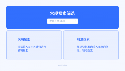 常規的搜索篩選不難理解,即常見的搜索框,根據輸入文本關鍵詞進行模糊搜索或者根據記憶準確輸入完整的信息,精準搜索。文本關鍵詞搜索需要通過用戶的記憶來完成,只有當用戶對需要搜索的內容(關鍵詞)有記憶才能完成搜索篩選,搜索的結果范圍根據關鍵詞的精準度而定。