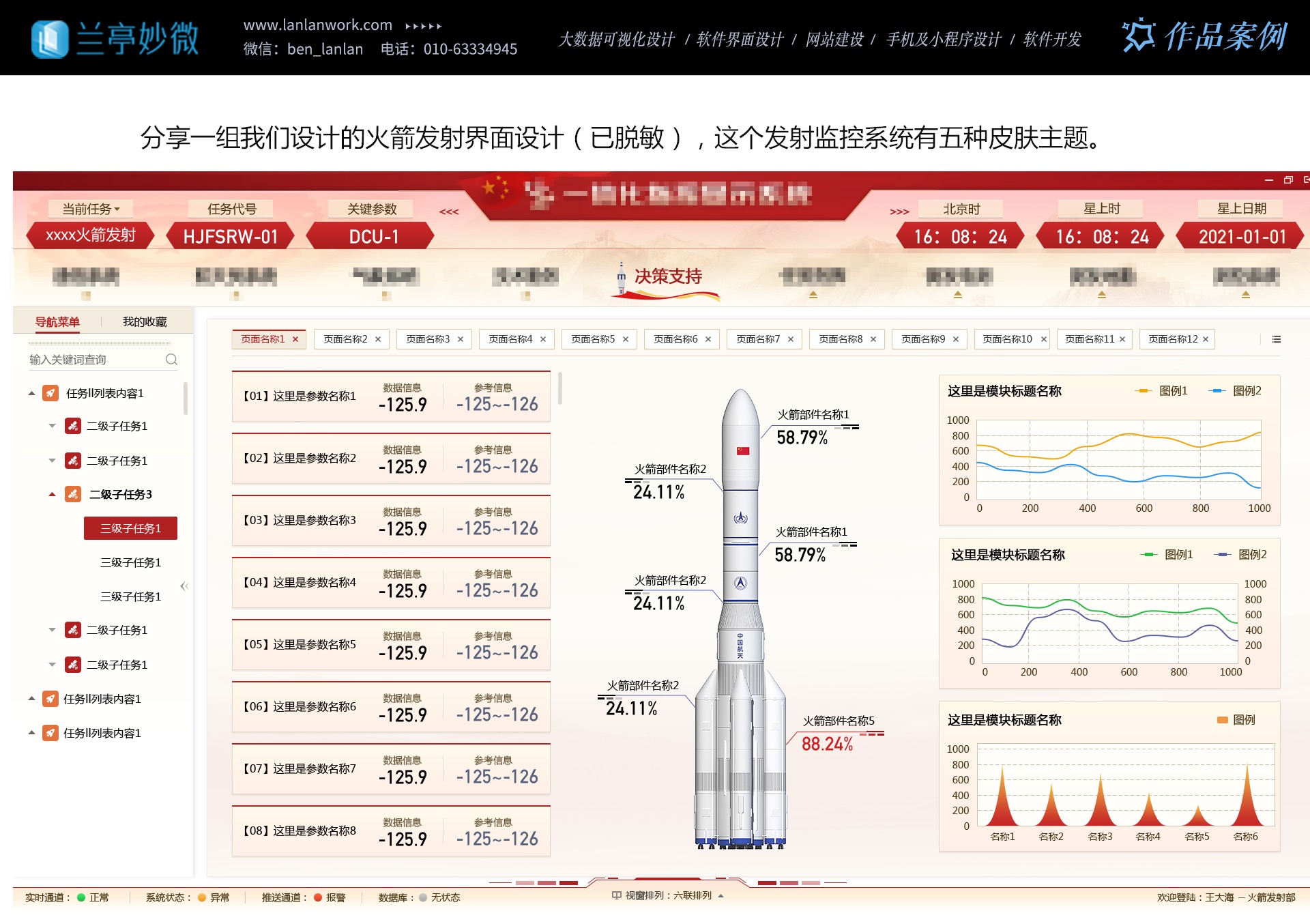 蘭亭妙微的設計內容廣泛而深入。在戰(zhàn)場態(tài)勢展示方面,他們運用先進的可視化技術,將復雜的戰(zhàn)場信息清晰地呈現給用戶,幫助用戶快速做出決策。在火箭發(fā)射領域,他們設計的界面簡潔明了,操作流程順暢,確保發(fā)射任務的順利進行。無人機、GIS 地圖、信號源等關鍵領域也都有他們的精彩設計。從交互原型設計到視覺風格打造,從功能布局重塑到多維表格應用,從 Qt 開發(fā)到 VR 仿真實訓,蘭亭妙微全方位服務于航天軍工產品,為企業(yè)提供一站式的 UI 設計解決方案。