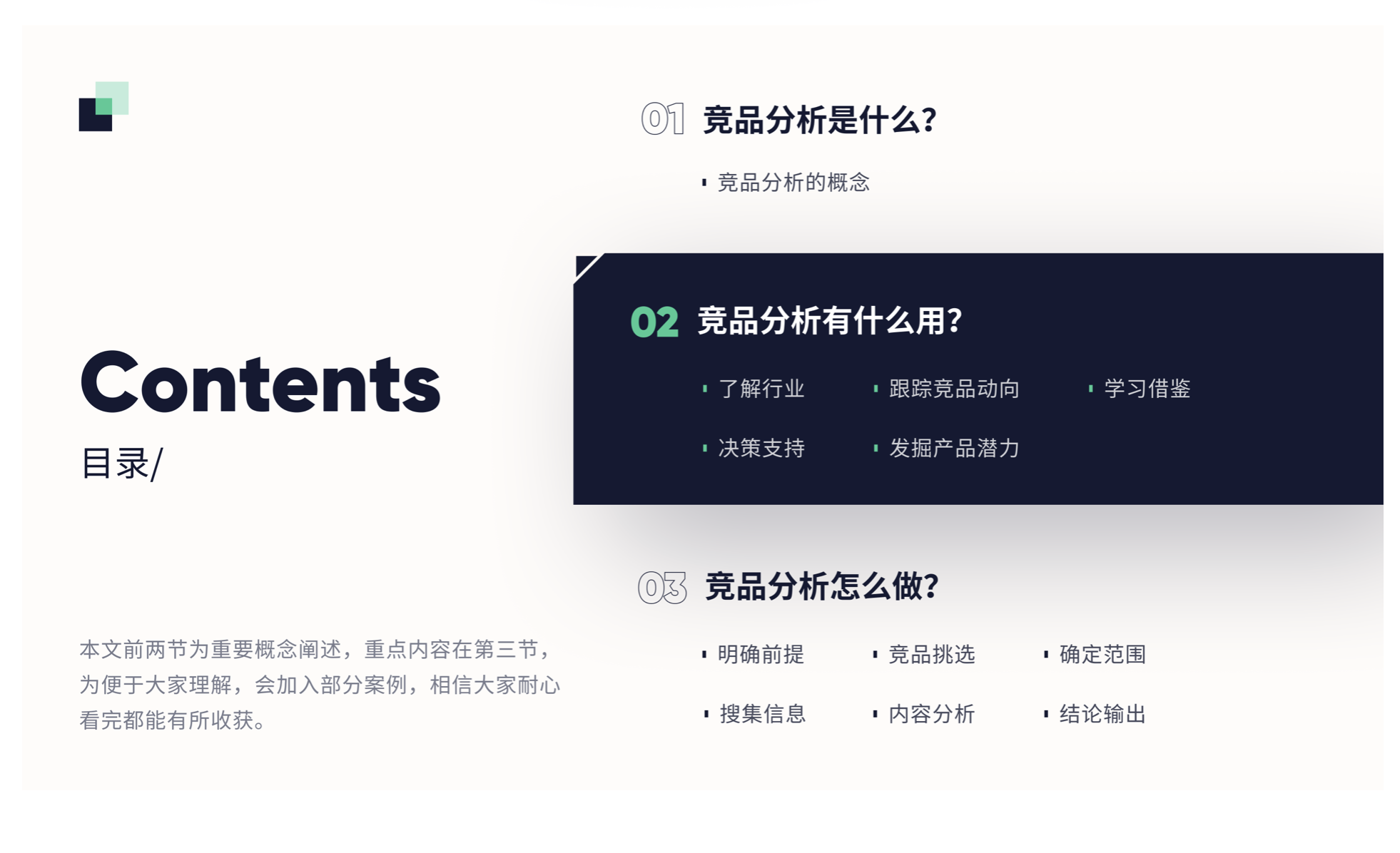 - 領導:重點關注競品的背景、定位分析、策略分析。