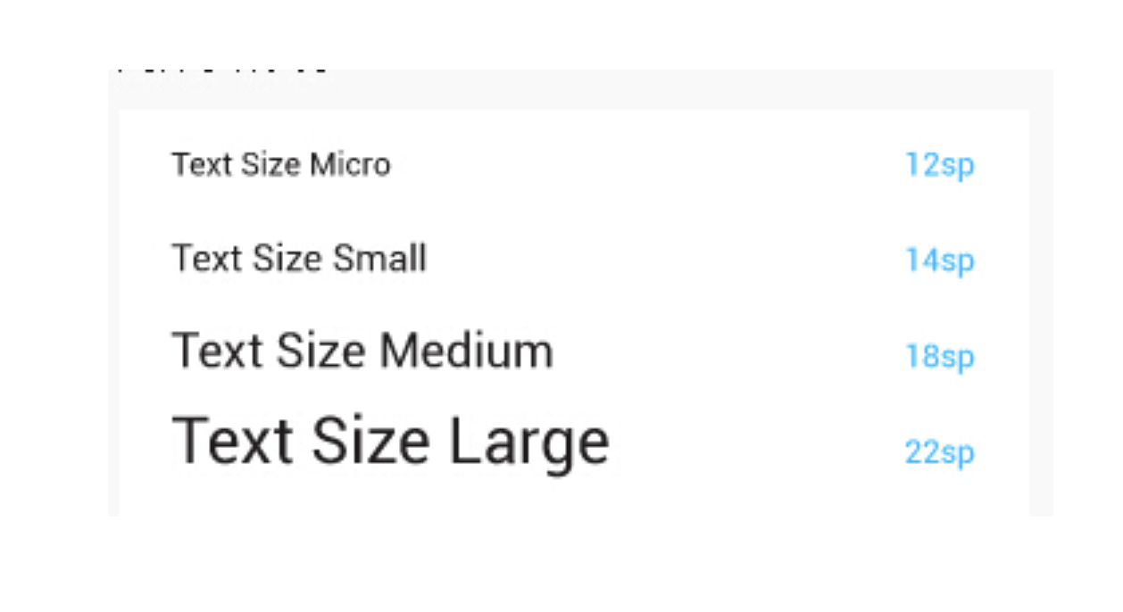 3. 字體:官方建議使用 12sp、14sp、18sp、22sp 等,盡量避免奇數大小。