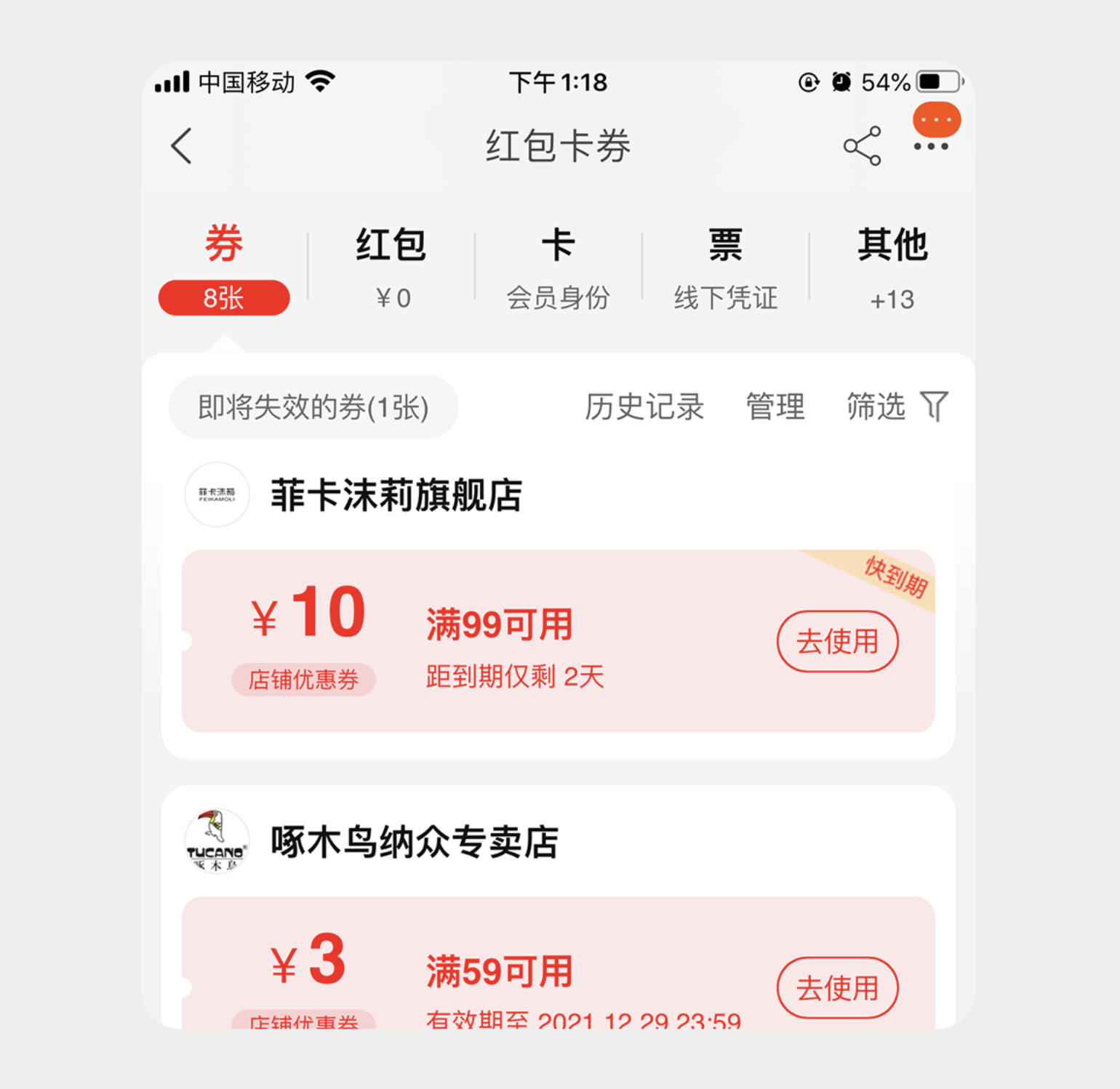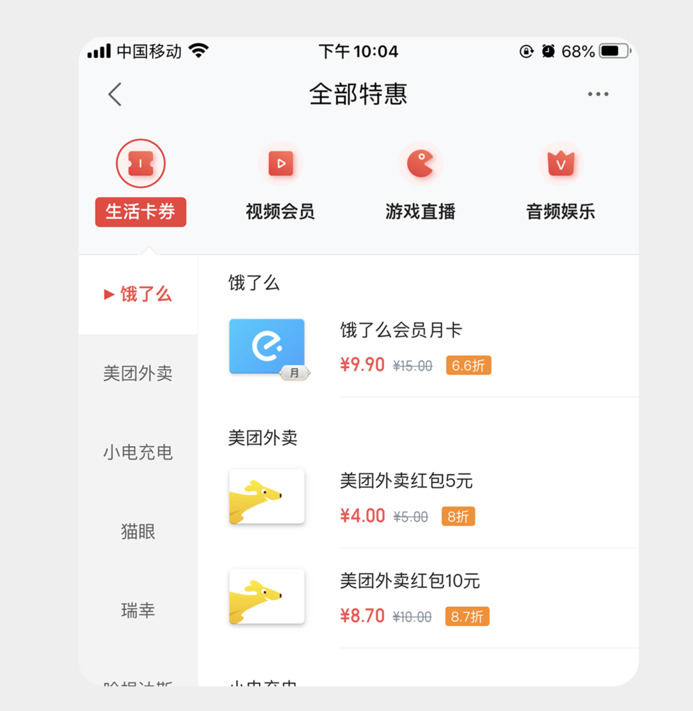 采用標題與副標題上下布局的形式,副標題精煉提煉核心信息或解釋標題含義,通過顏色變化區(qū)分選中與未選中狀態(tài)。像中國移動的紅包卡券頁面,標簽頁用 “券”“紅包”“卡” 作為標題,搭配簡潔副標題補充說明,用戶無需點擊就能快速了解各標簽下的內(nèi)容,提升操作效率;基金產(chǎn)品的 “一筆投”“定投” 標簽頁,也通過副標題點明 “便捷”“穩(wěn)健” 的核心差異,幫助用戶快速做選擇。