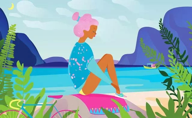 藍色與多種顏色相搭配,盡量選中一個作為主色,比如上圖中以藍色作為主色,無論是遠山天空還是河流,包括人物的衣服都是藍色,與此同時,粉紅作為點睛色。畫面雖然大量運用藍色,會偏向冷調,但此處運用了紅色、黃色和偏暖的綠色就讓畫面的顏色達到了平衡。