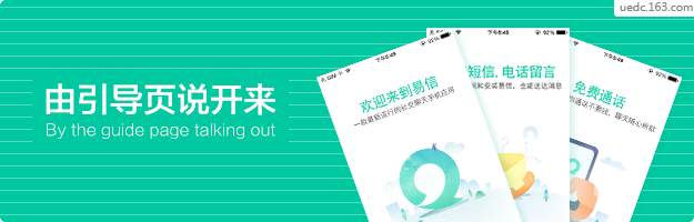 以易信為例,采用文字與水彩插圖結(jié)合的方式,文字分為2個(gè)層次,大標(biāo)題與小標(biāo)題,大標(biāo)題是對(duì)主功能的概括,小文字是對(duì)其功能模塊的詳細(xì)描述或進(jìn)一步補(bǔ)充說(shuō)明。