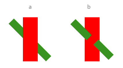 連續原則 和閉合原則有些類似。以實物形象上的不連續使瀏覽者產生心理上的連續知覺??吹絘圖,瀏覽者會認為是一個綠色條和一個紅色相交,而事實卻是b圖。