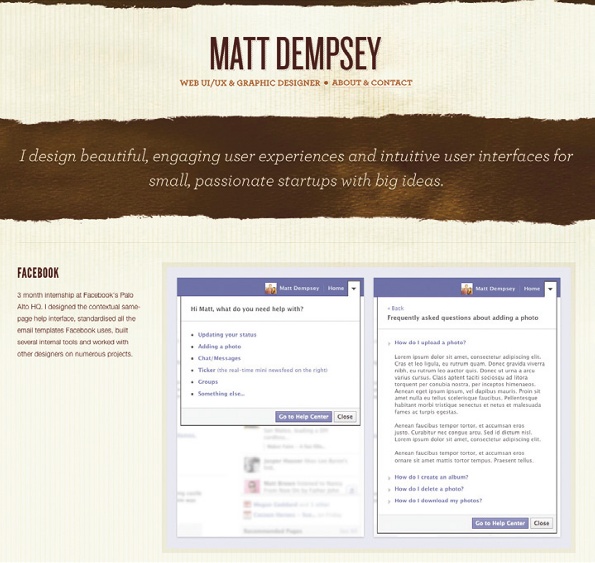 Sacha Greif是一名UI設(shè)計師,同時也是自由設(shè)計師工作信息公告板Folyo的創(chuàng)始人,他每天都能接觸到大量的作品集。在他看來,案例質(zhì)量的重要性確實要高于數(shù)量,不過至少5到6個項目展示也是需要保證的。如果你是一名畢業(yè)生或是相對年輕的設(shè)計師,無法拿出一定數(shù)量的設(shè)計案例,那么也不用太焦慮,最首要的是針對你手頭已有的案例盡量詳細的呈現(xiàn)其中的細節(jié);當然,個人項目也可以作為補充。此外,你還可以將一些學習和探索性質(zhì)的作品囊括進來,例如幫Facebook重新設(shè)計一套頁面——只要你不會宣稱這是扎克伯格授權(quán)你做的就好。