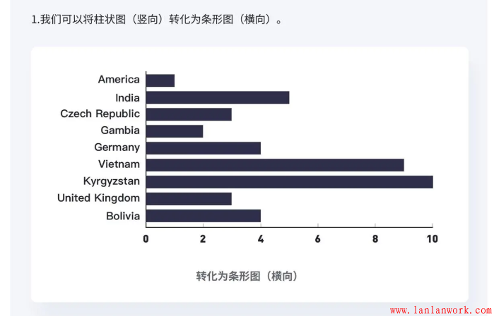 一般進行數(shù)據(jù)比較時,柱狀圖建議不要超過5個數(shù)據(jù)值,對于條形圖來說,建議不要超過7個數(shù)據(jù)值。