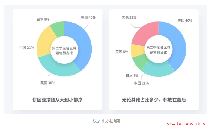當數(shù)據(jù)中包含一個類別叫「其他」時,無論其他的內(nèi)容占比為多少,我們最好都把他放置在餅圖的最后來展示。