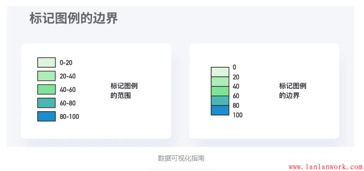 在需要用多種顏色做區(qū)分的圖表中,有時可以通過標記圖例邊界而不是標記圖例范圍的方式,來提高觀眾的閱讀效率。