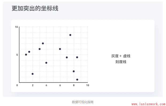 如果確定要使用刻度線,則需要使它們比作為實際數(shù)據(jù)的點或者線條要層級低。因為這些刻度線也屬于背景的一部分。