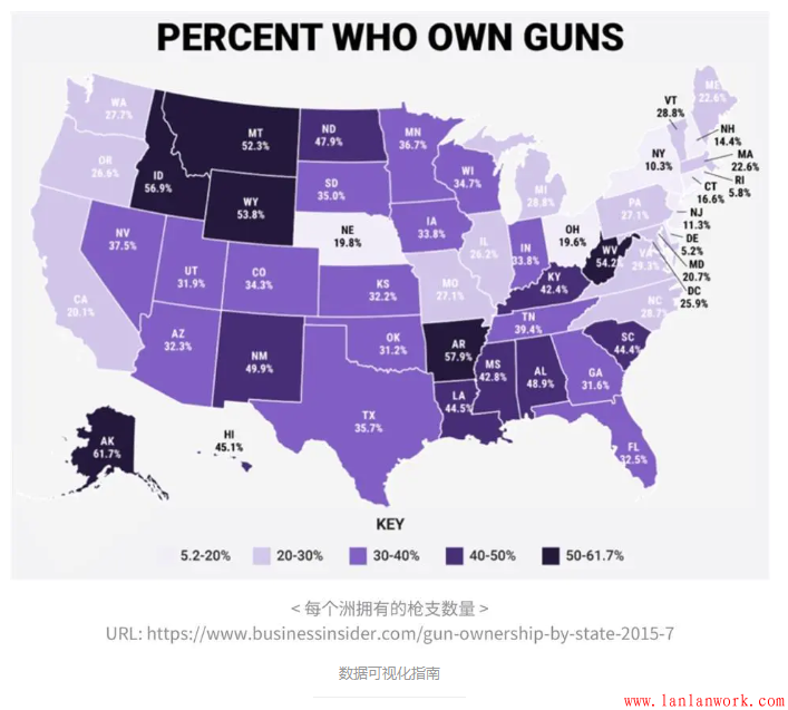 以下是美國各州擁有槍支人數(shù)占總?cè)藬?shù)的百分比統(tǒng)計圖。