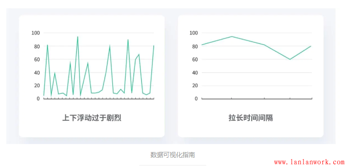 如果你的折線上下浮動過于劇烈,那么你應(yīng)該嘗試拉長時間間隔,比如不每天采樣而以周為單位來采樣。觀眾們不會去閱讀鋸齒狀的線條,或者說他們不會喜歡這樣的圖表。