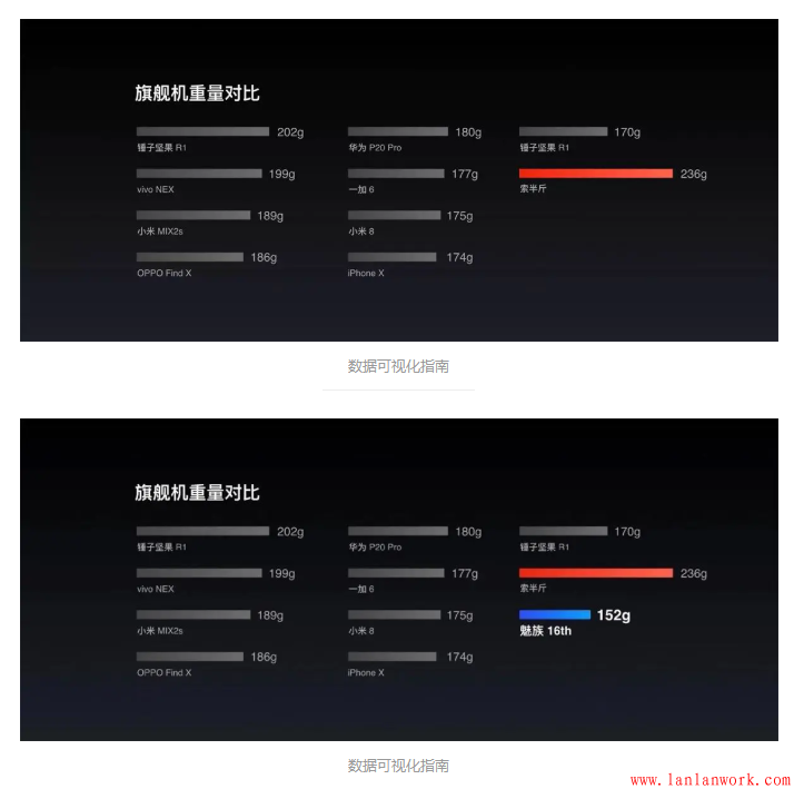 比如像這個圖表,為了體現(xiàn)出響應(yīng)速度有很大的提升,,添加了相關(guān)輔助線并標注了相應(yīng)的數(shù)字,使 PRO5 和 SONY Z3+ 之間的對比更加明顯.