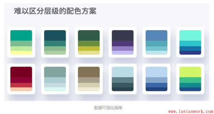 雖然這些配色方案同樣絢麗多彩,但是他們不能靈活應(yīng)對圖表中復(fù)雜的信息層級。