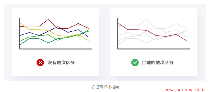 當我們在制作一個復(fù)雜的折線圖時,我們想要顯示其中的一條數(shù)據(jù),最好的方法就是加強它與其他元素的對比,從而提高它的重要性層級。