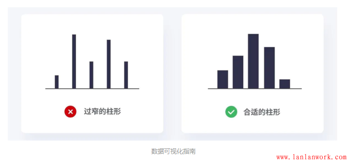 過寬的柱會讓圖表看起來笨重,盡量保持柱的輕薄,這樣可以保持優(yōu)雅的外觀,但是太薄了會讓用戶很難對數(shù)據(jù)進行比較。