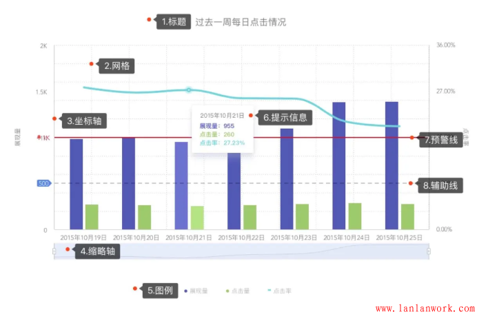 突出信息:根據(jù)可視化展示目標,將重要信息添加輔助線或更改顏色等手段,進行信息的凸顯,將用戶的注意力引向關(guān)鍵信息,幫助用戶理解數(shù)據(jù)意義。