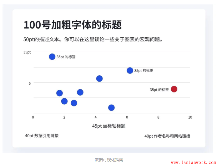 圖表中的字體數(shù)量以及字體大小的種類加起來不要超過3種(標題和副標題除外)。通常來說,我們在制作時會把注釋和坐標軸標簽設(shè)置為兩種字體樣式,所以只需要確保將這兩者統(tǒng)一起來,那么就可以保證我們的圖表不超過3種字體樣式。