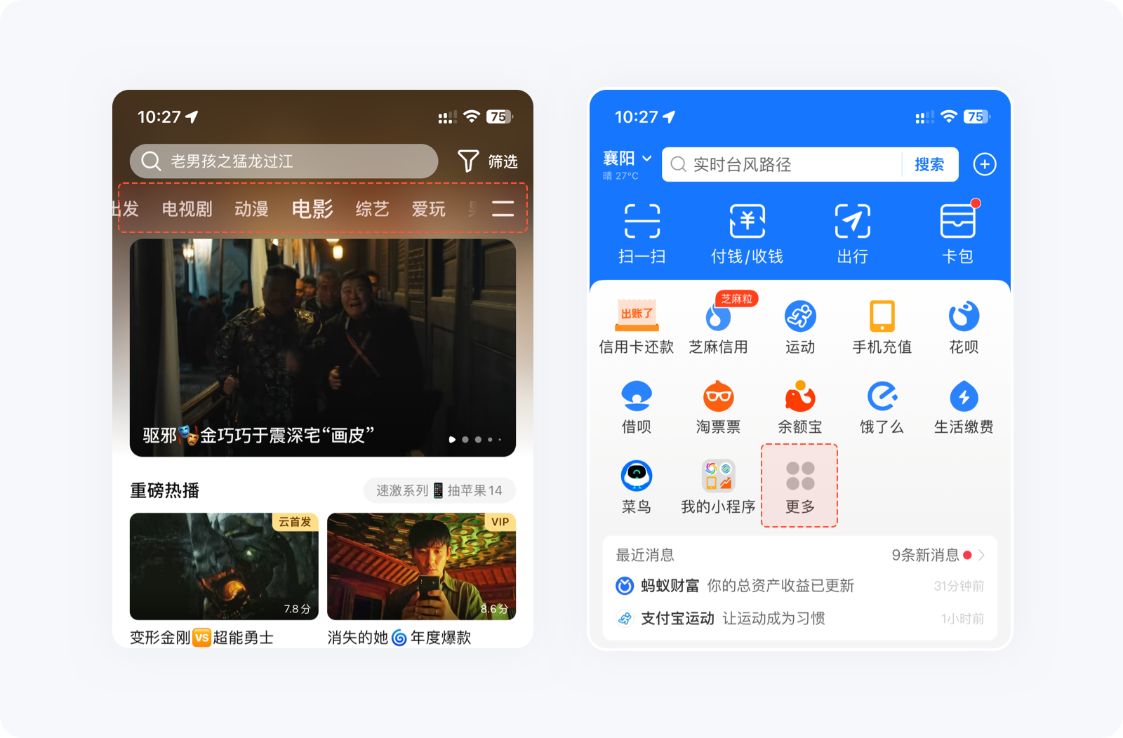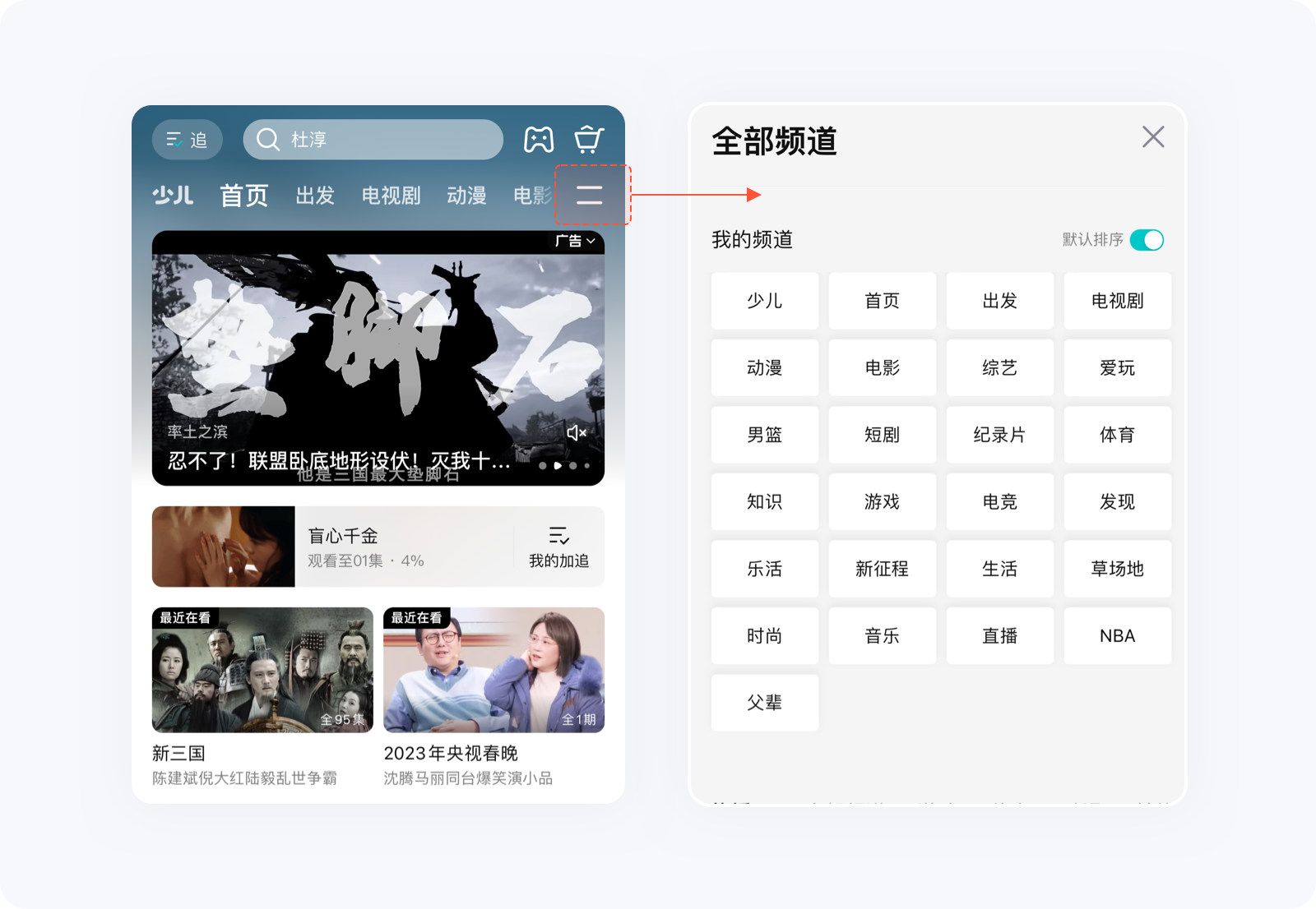 如果大量的選項無法減少,可將重要選項靠前,將其他的隱藏起來,方便用戶決策及降低失誤操作的概率。例如騰訊視頻頂部分類后面的更多圖標、支付寶首頁金剛區的更多入口,點開后就會發現,里面隱藏了非常多的功能,這樣做能減少用戶認知負荷,提高信息篩選的效率。