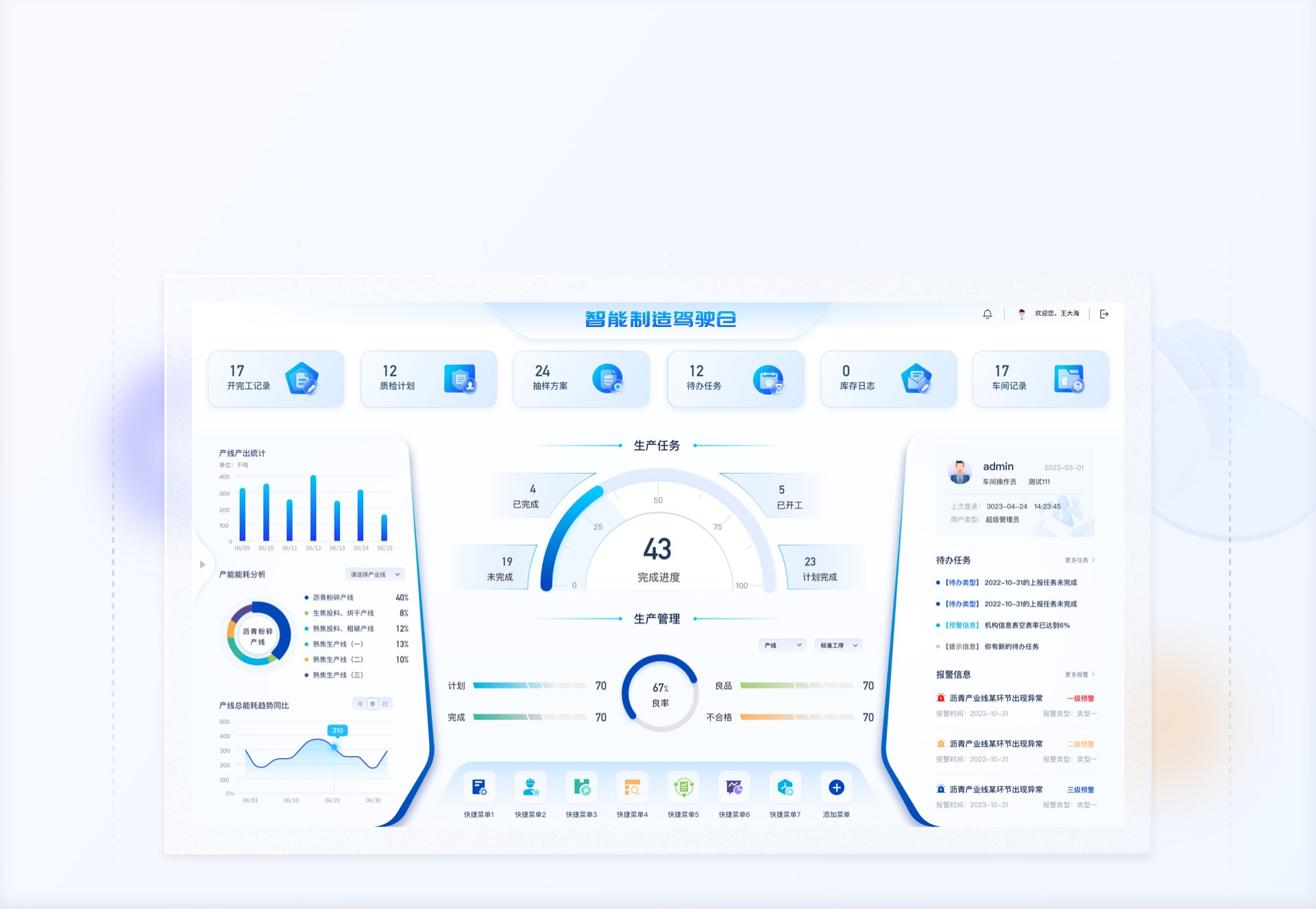 菜單導(dǎo)航區(qū)疊加工廠作業(yè)場景圖,突出軟件的主題同時豐富頁面。